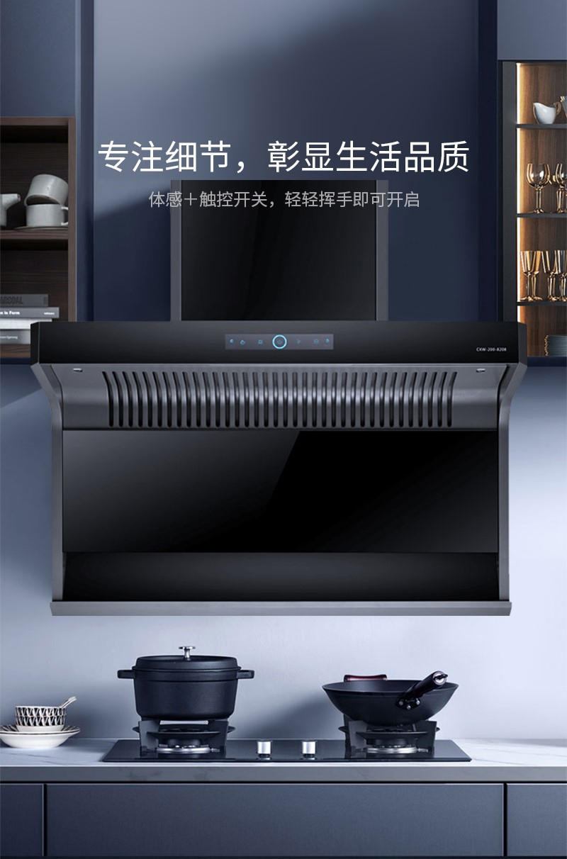 一臺(tái)優(yōu)秀的吸油煙機(jī),貼心的細(xì)節(jié)功能,往往會(huì)讓烹飪者的使用體驗(yàn)大大提升,如此,烹飪的興趣大大增加,美食創(chuàng)作的過(guò)程會(huì)迸發(fā)出無(wú)限的創(chuàng)意。CXW-200-8208油煙機(jī),體感+觸控開(kāi)關(guān),輕輕揮手即可開(kāi)啟。一體弧形玻璃背板,不但更加富有美感,而且也更容易清潔,不劃手。